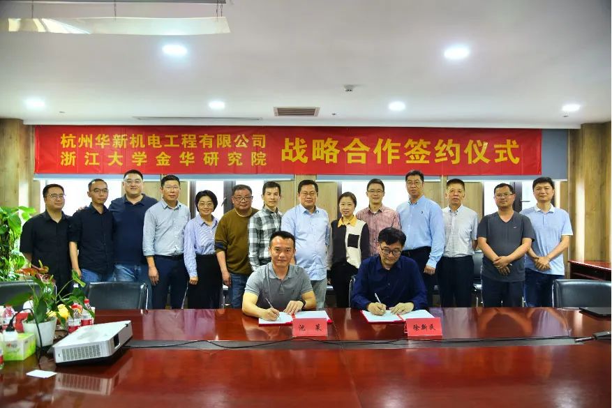 在嘉賓們的共同見證下,公司副總經(jīng)理沈策與浙大金華院常務(wù)副院長徐新民共同簽署了《杭州華新機電工程有限公司-浙江大學(xué)金華研究院戰(zhàn)略合作協(xié)議》。