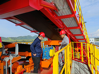 為保障碼頭土建順利進行,華新團隊要在大風(fēng)、暴雨等惡劣天氣來臨前完成設(shè)備調(diào)試并實現(xiàn)轉(zhuǎn)移,為碼頭廊道澆筑留出時間和空間。項目經(jīng)理周逸、電氣工程師趙洋帶領(lǐng)華新團隊克服場地受限、設(shè)備調(diào)試時間緊、工程車調(diào)度時間久等困難,加班加點堅守項目一線,第一時間解決設(shè)備調(diào)試過程中產(chǎn)生的問題,最終保障項目如期完成進度,為碼頭順利完工打下了基礎(chǔ)。