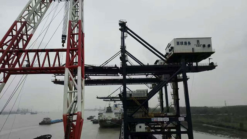 由杭州華新機(jī)電工程有限公司總包的南京西壩港務(wù)有限公司兩臺(tái)1500t/h在線料斗稱重卸船機(jī),經(jīng)十二天的努力,于9月29日滾裝、運(yùn)輸、吊裝工程順利完成。