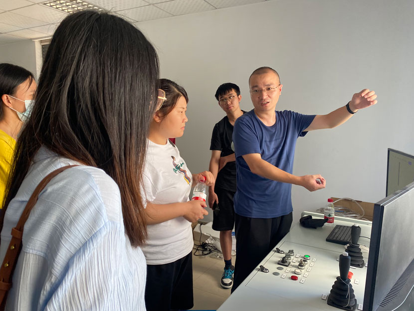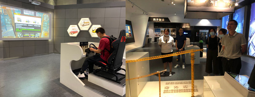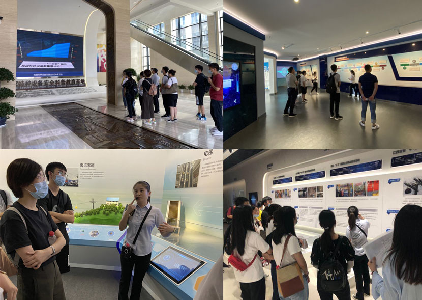 參觀特檢院展館,認(rèn)真聆聽講解員介紹起重機行業(yè)歷史,操作館內(nèi)模型。