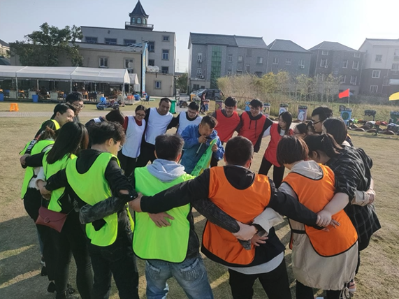 接下來是由團(tuán)建教練帶領(lǐng)大家進(jìn)行團(tuán)建前的熱身以及“排兵布陣”小活動。