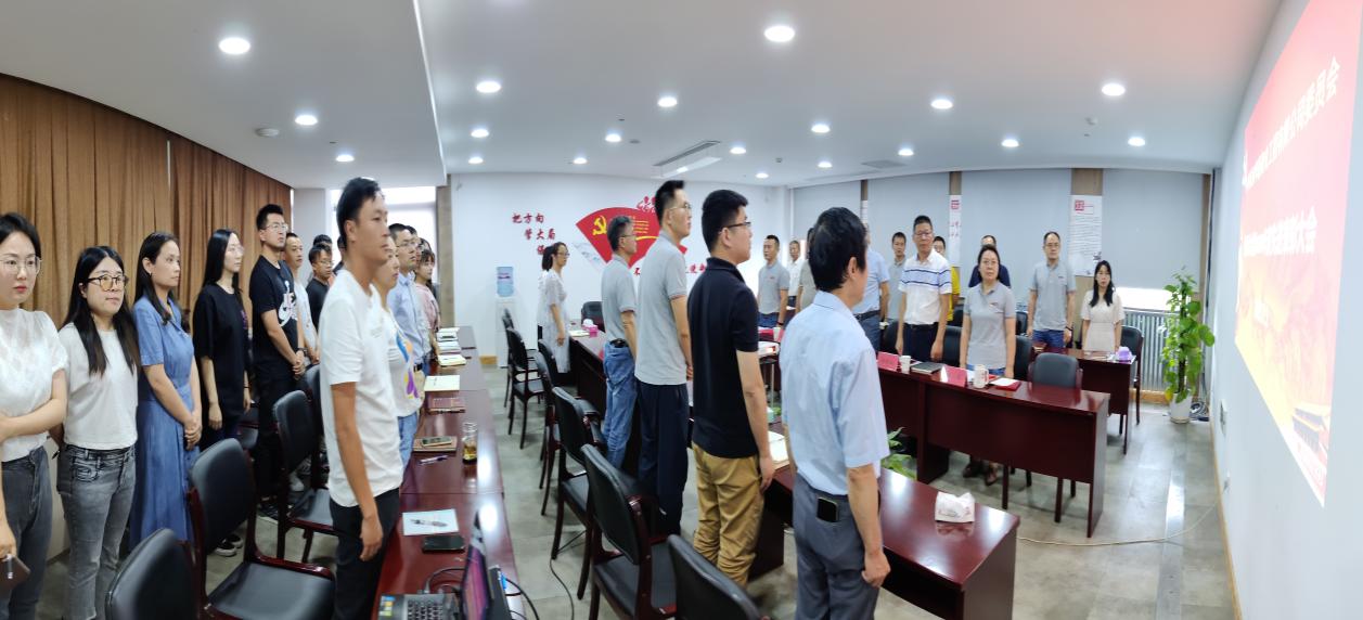 會議伊始,莊嚴(yán)肅穆,全體黨員起立共唱國歌。