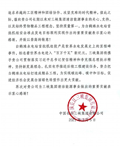 隨著各個工程項目階段性的驗收和竣工,近幾個月來,華新機電陸續(xù)收到了來自西藏能源、三峽集團、中核總、印尼、非洲等公司發(fā)來的感謝信和表揚信。對于客戶的充分肯定和高度認可,公司倍感欣慰,也為能參與這些重大項目的工程建設(shè)深感自豪。烏東德、白鶴灘水電站橋機,“華龍一號”福清核電站橋機、西藏DG水電站橋機、印尼芝拉扎卸船機裝船機、非洲幾內(nèi)亞裝船機等,都無一不滲透著華新機電人的智慧和留下了的辛勤汗水。